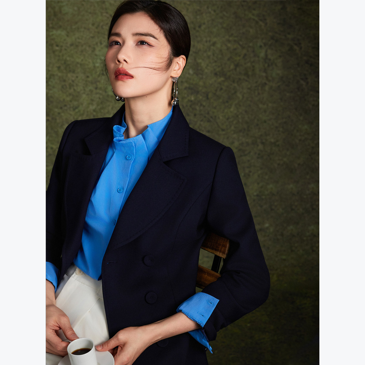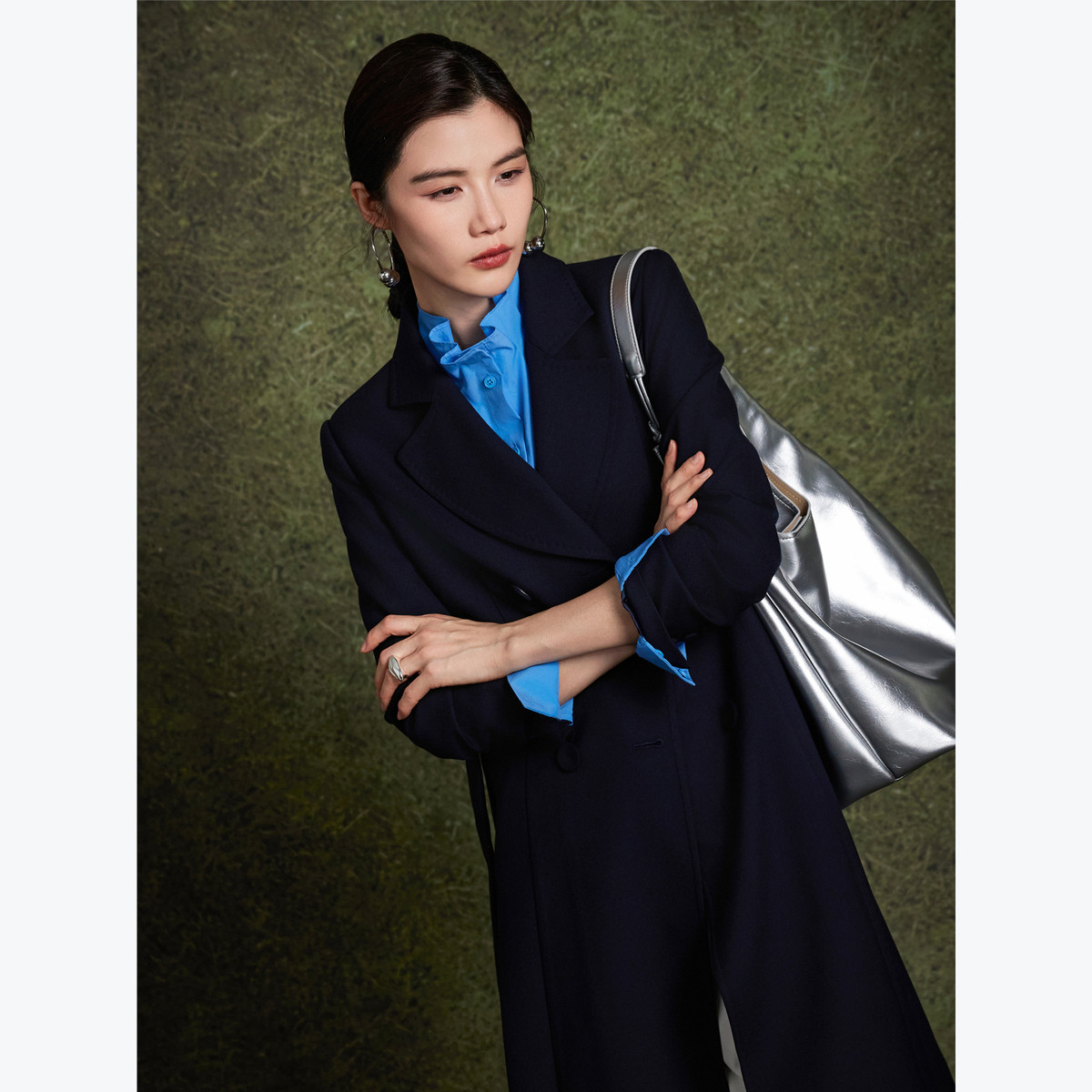 BBLLUUEE粉蓝衣橱2025冬装新款气场翻领斜纹羊毛长大衣女毛呢外套