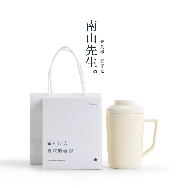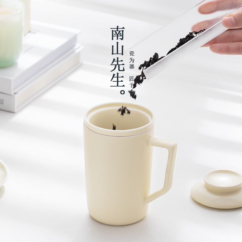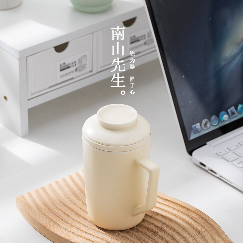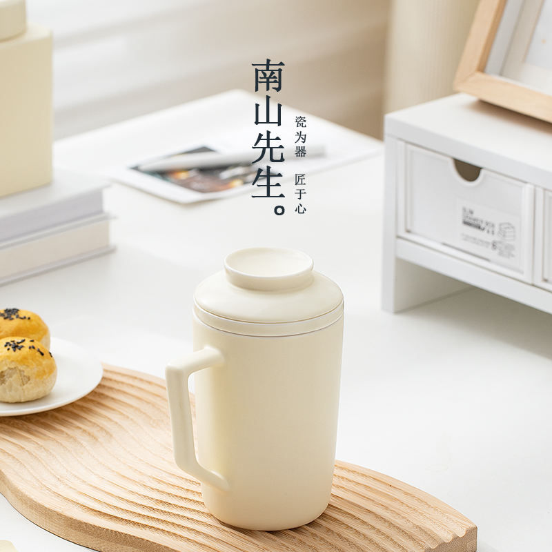 南山先生半见泡茶杯家用陶瓷茶水分离带盖过滤茶杯办公马克杯水杯