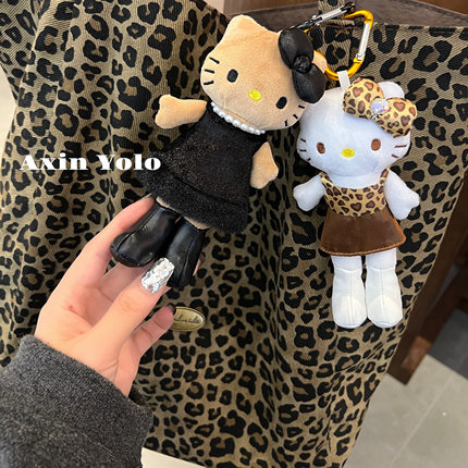 阿馨yolo 毛绒公仔钥匙书包扣百搭黑皮大长腿小香hellokitty挂件