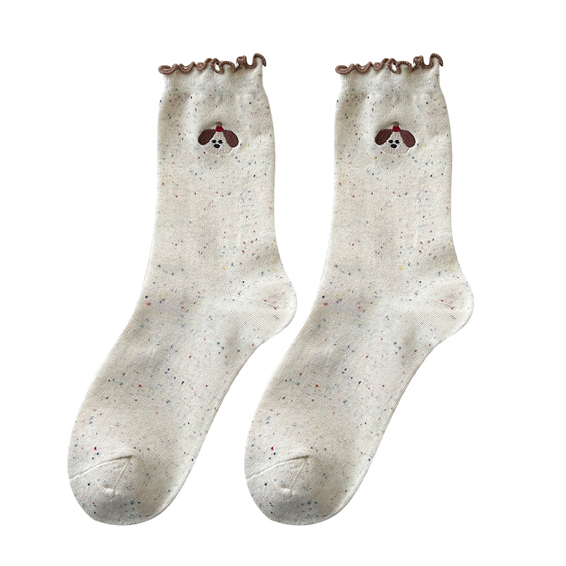 纯棉袜子女士木耳边可爱个性中筒袜春夏款点子纱刺绣百搭少女袜子