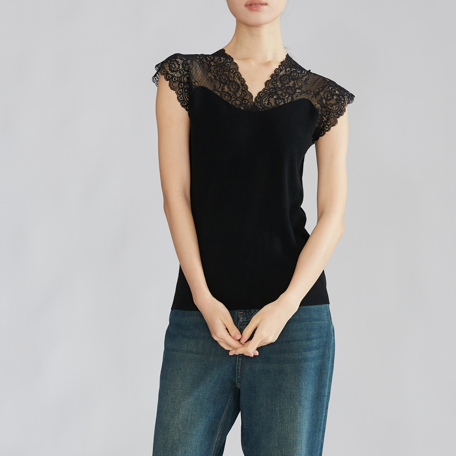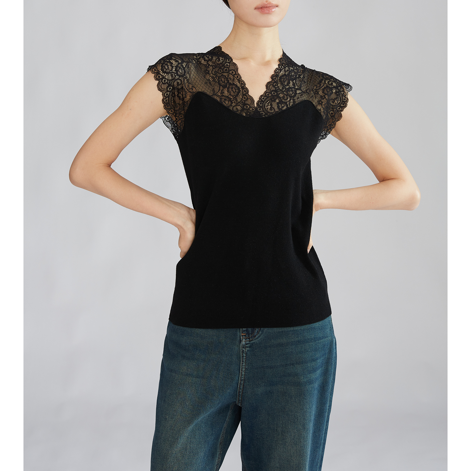 真丝羊绒蕾丝背心含桑蚕丝V领