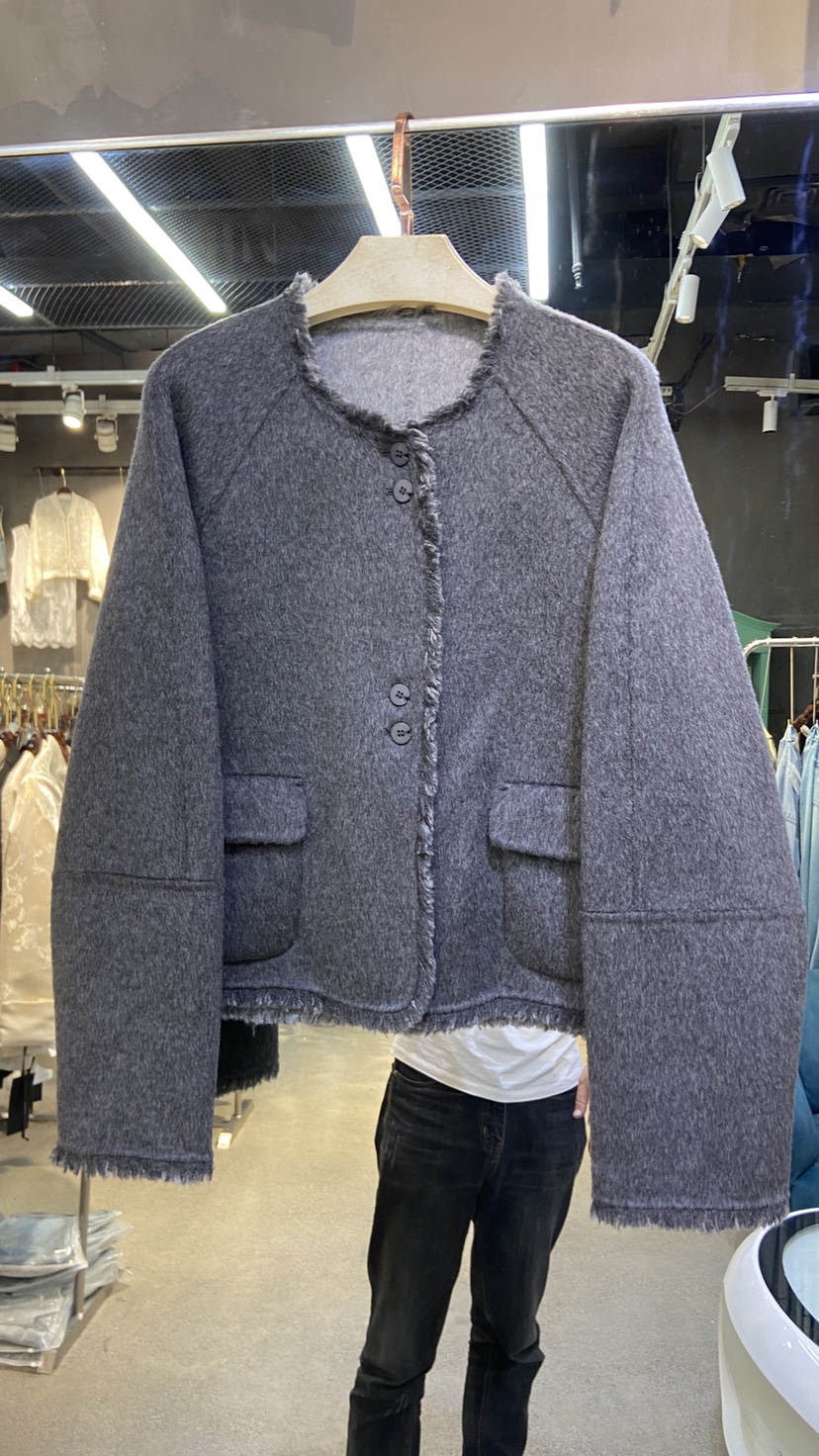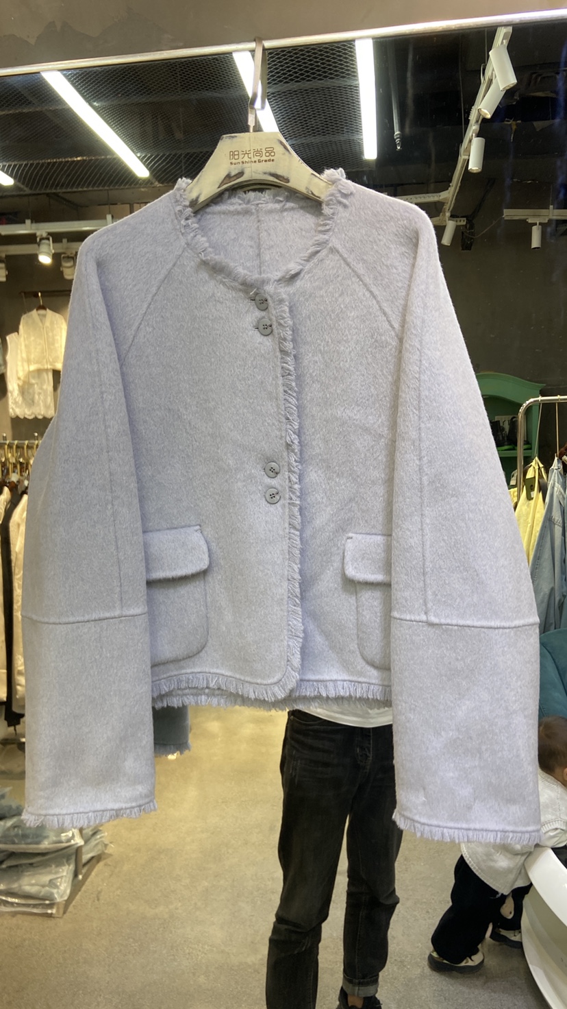 欧货2025冬新双面呢100%羊毛大衣女短款小个子小香风流苏毛呢外套