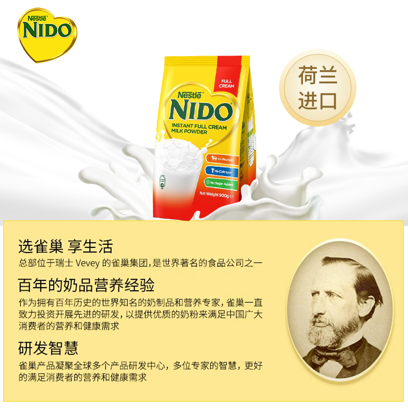 【自营】雀巢nido荷兰进口全脂高钙高蛋白成年人奶粉900g*2/袋