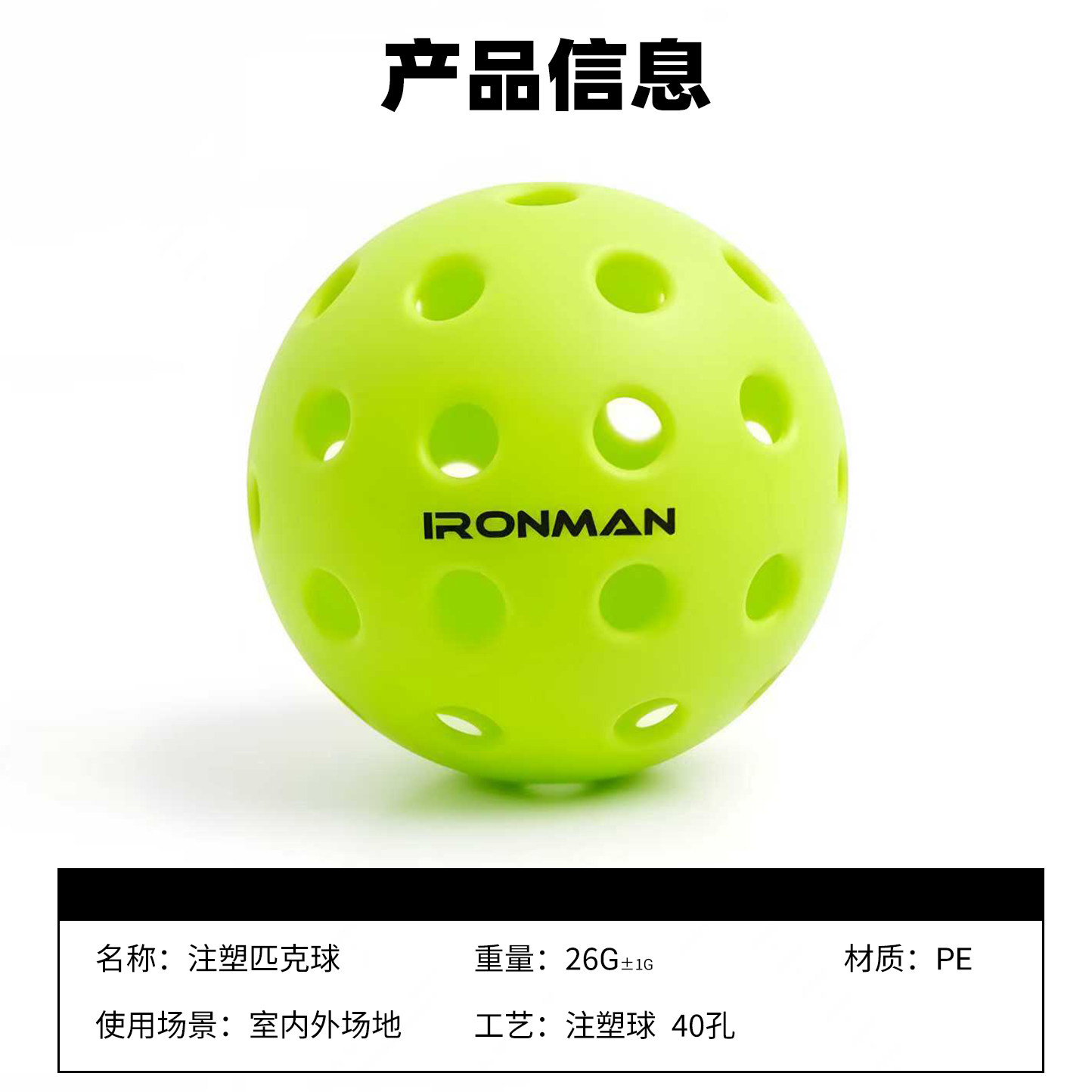 铁人pickleball注塑匹克球比赛运动用洞洞训练球40孔室内室外户外