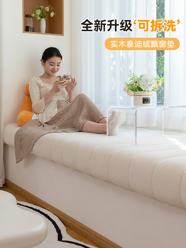 奶油风飘窗垫可拆洗泰迪绒