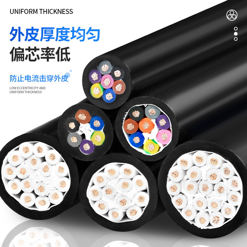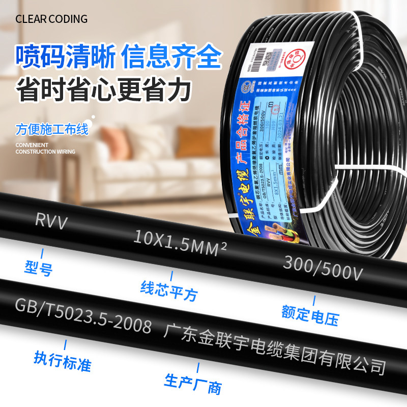 金联宇国标RVV纯铜电缆线6芯7芯8芯0.5 0.75 1.5平方控制信号线