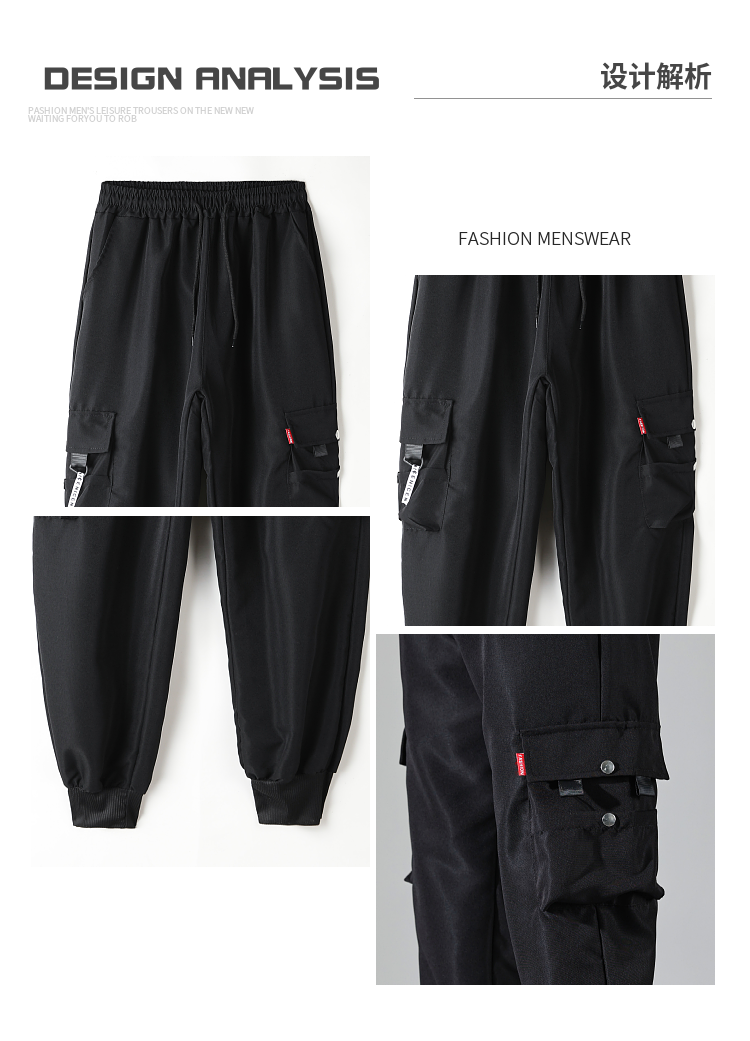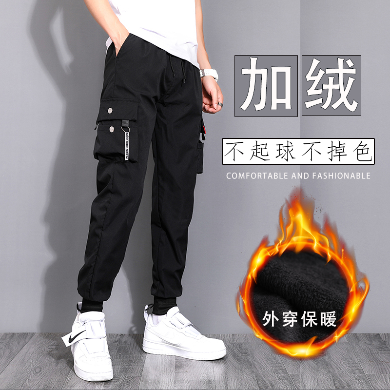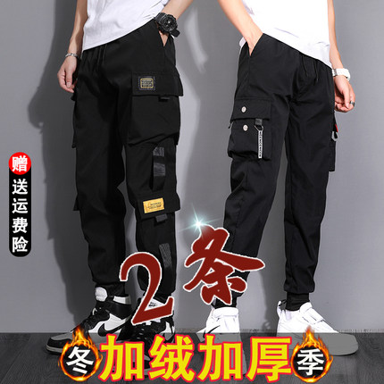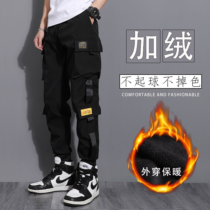 潮牌工装裤男士2025秋冬加绒休闲宽松束脚裤学生运动炸街机能长裤