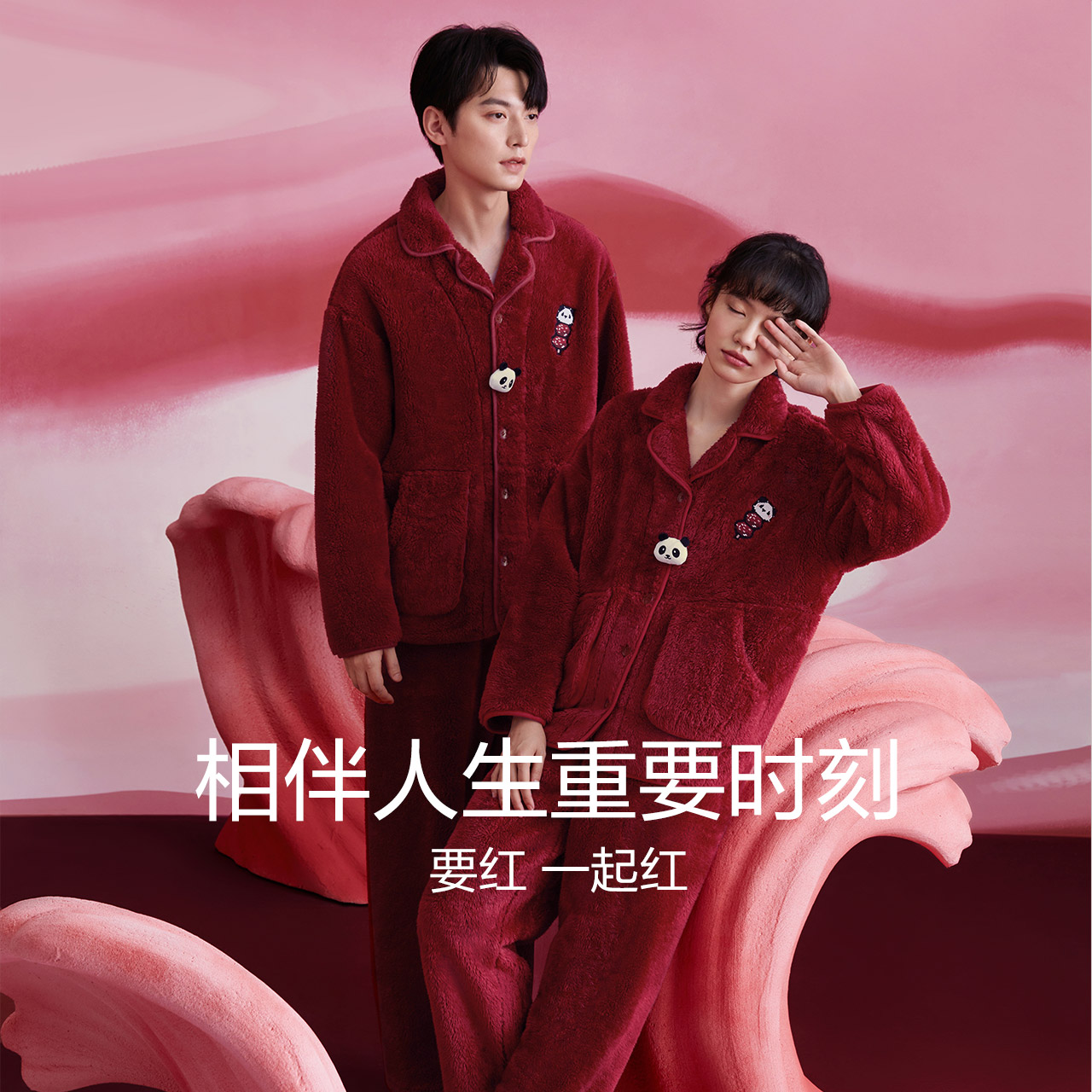 居家舒适情侣睡衣红豆加厚保暖