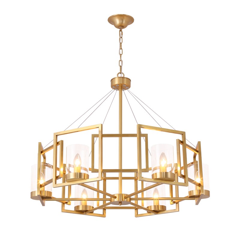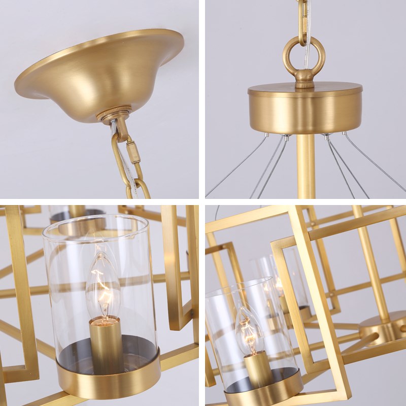 后现代轻奢大气客厅纯铜吊灯美式简约卧室餐N厅服装店全铜玻璃吊