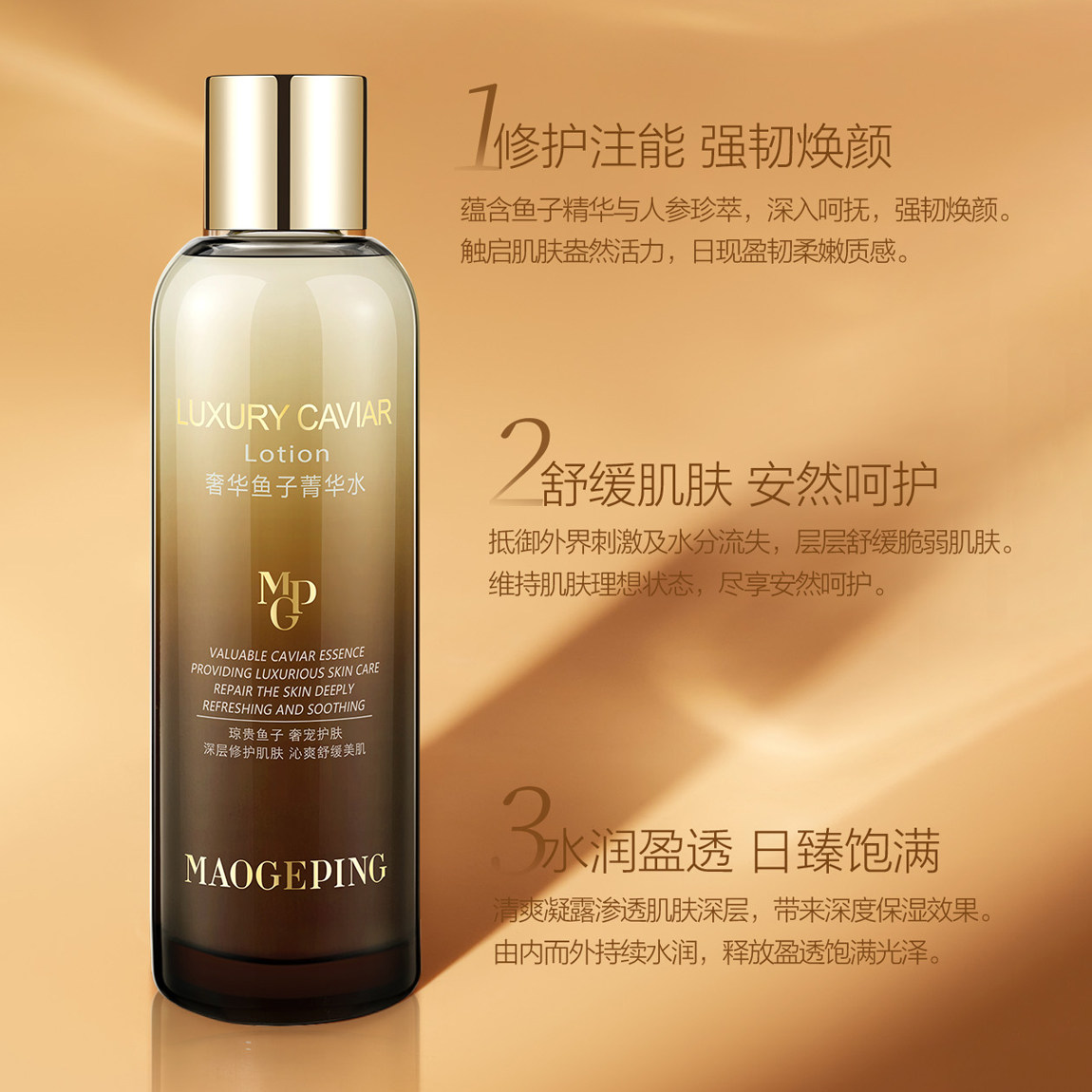 毛戈平奢华鱼子菁华水补水保湿提亮舒缓修护精华水液100ml/180ml