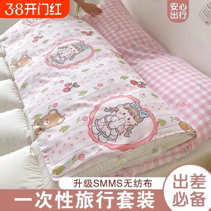酒店旅行一次性床单被罩枕套旅游浴巾卧铺火车四件套出门加宽双人