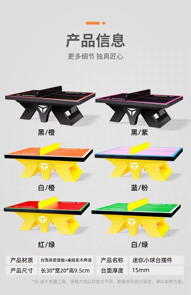 2023年新款德国TIBHAR挺拔彩色迷你球台摆件迷你球桌乒乓球桌娱乐