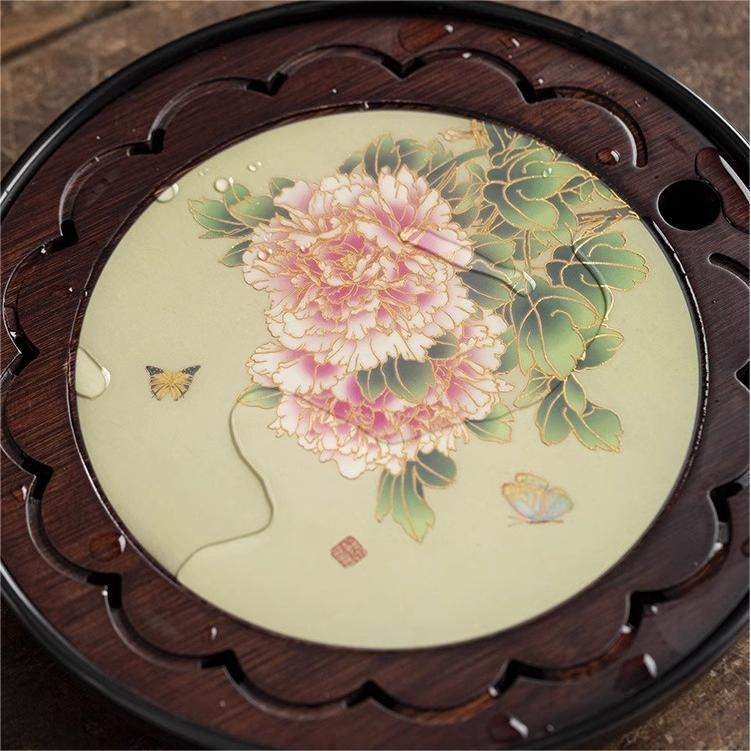 竹制茶盘沥水高档家用茶具简约托盘茶海圆形储水排水小型干泡茶台