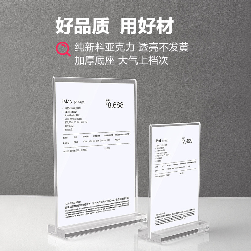 A4亚克力台卡架展示牌无强磁台牌A5桌牌介绍双面透明T型抽拉台签菜单价格牌广告牌A6立牌桌面餐牌价目表定制