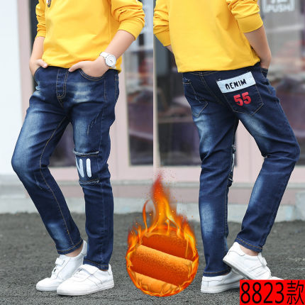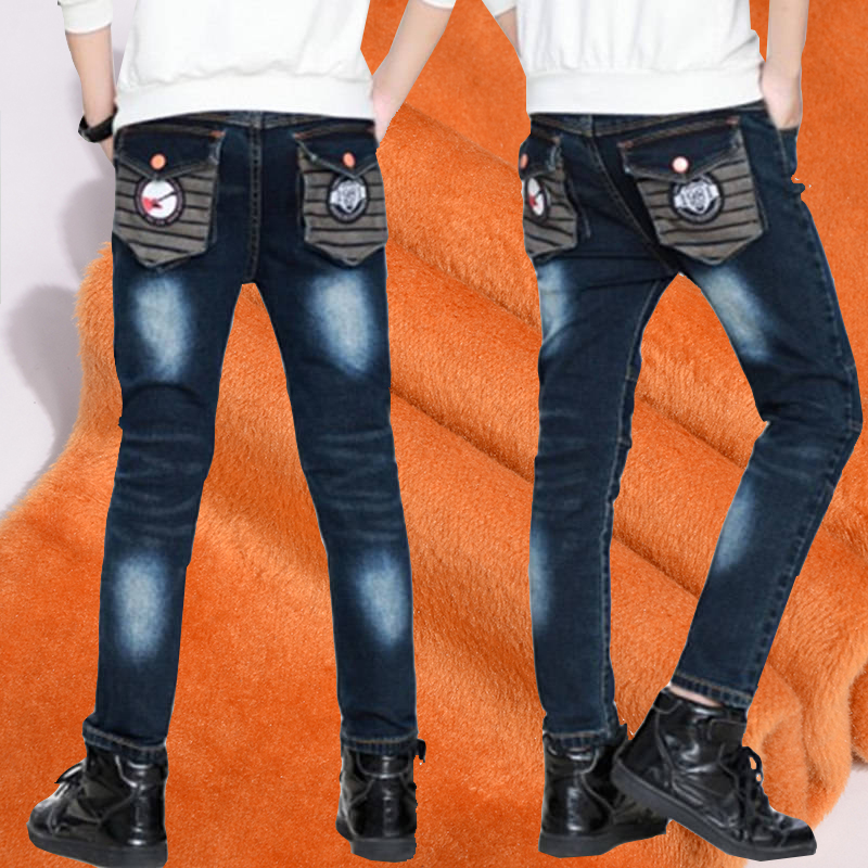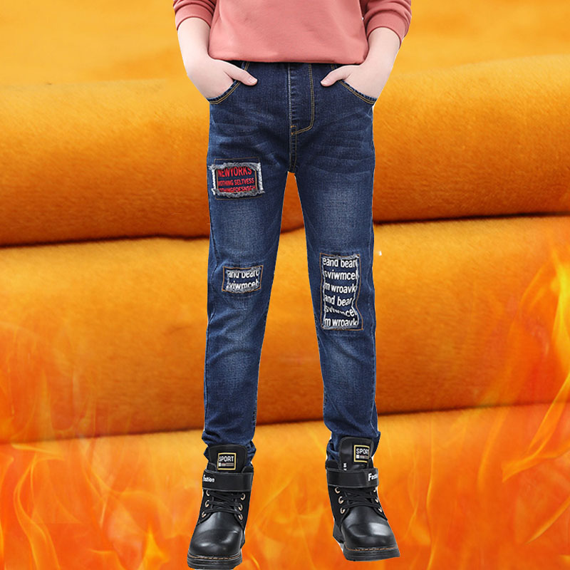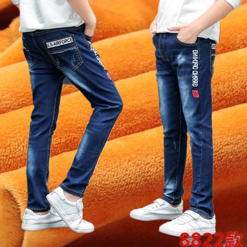 男童牛仔裤加绒加厚长裤冬款儿童保暖修身韩版2024新款裤中大童裤