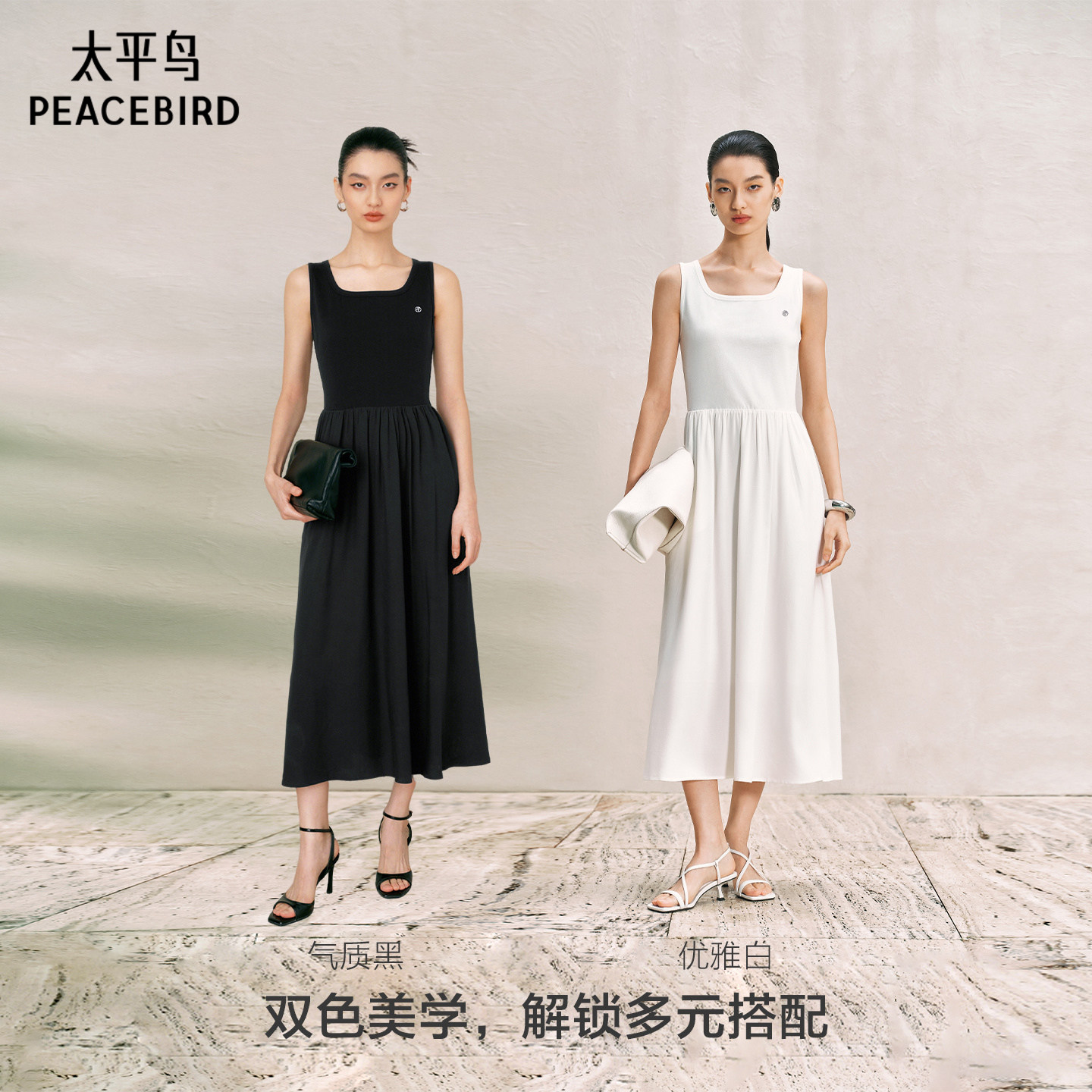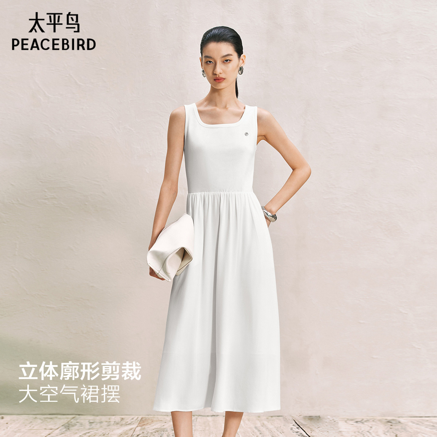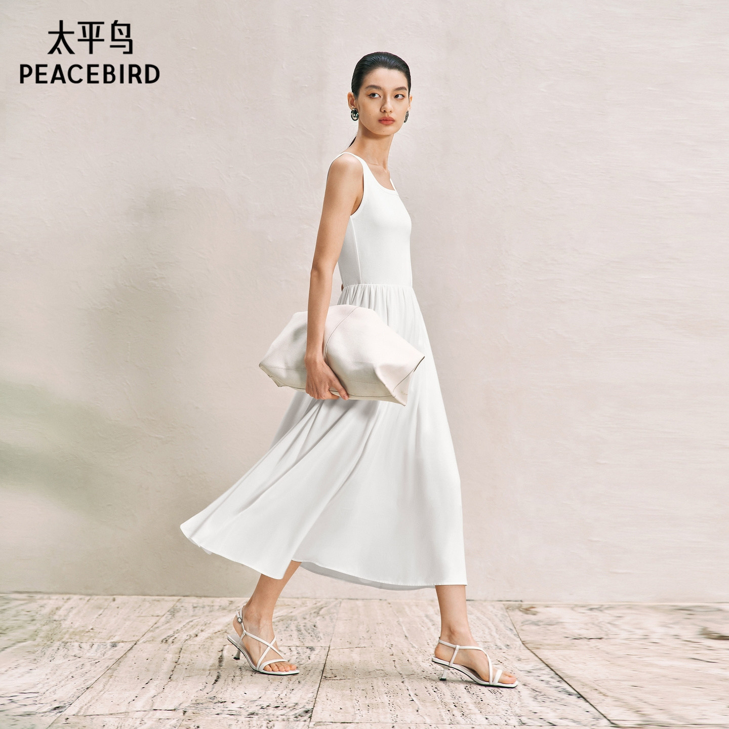 太平鸟纸片人天鹅裙吊带连衣裙气质U领无袖连身裙子夏新款通勤女