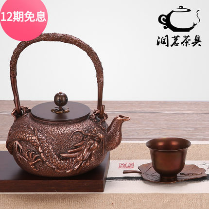 手工飞龙紫铜无涂层节日烧水壶
