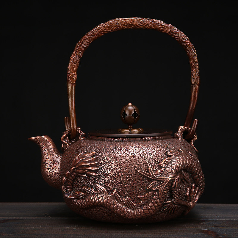 手工飞龙铸铜壶加厚紫铜纯铜烧水壶功夫茶壶煮茶壶无涂层节日礼品