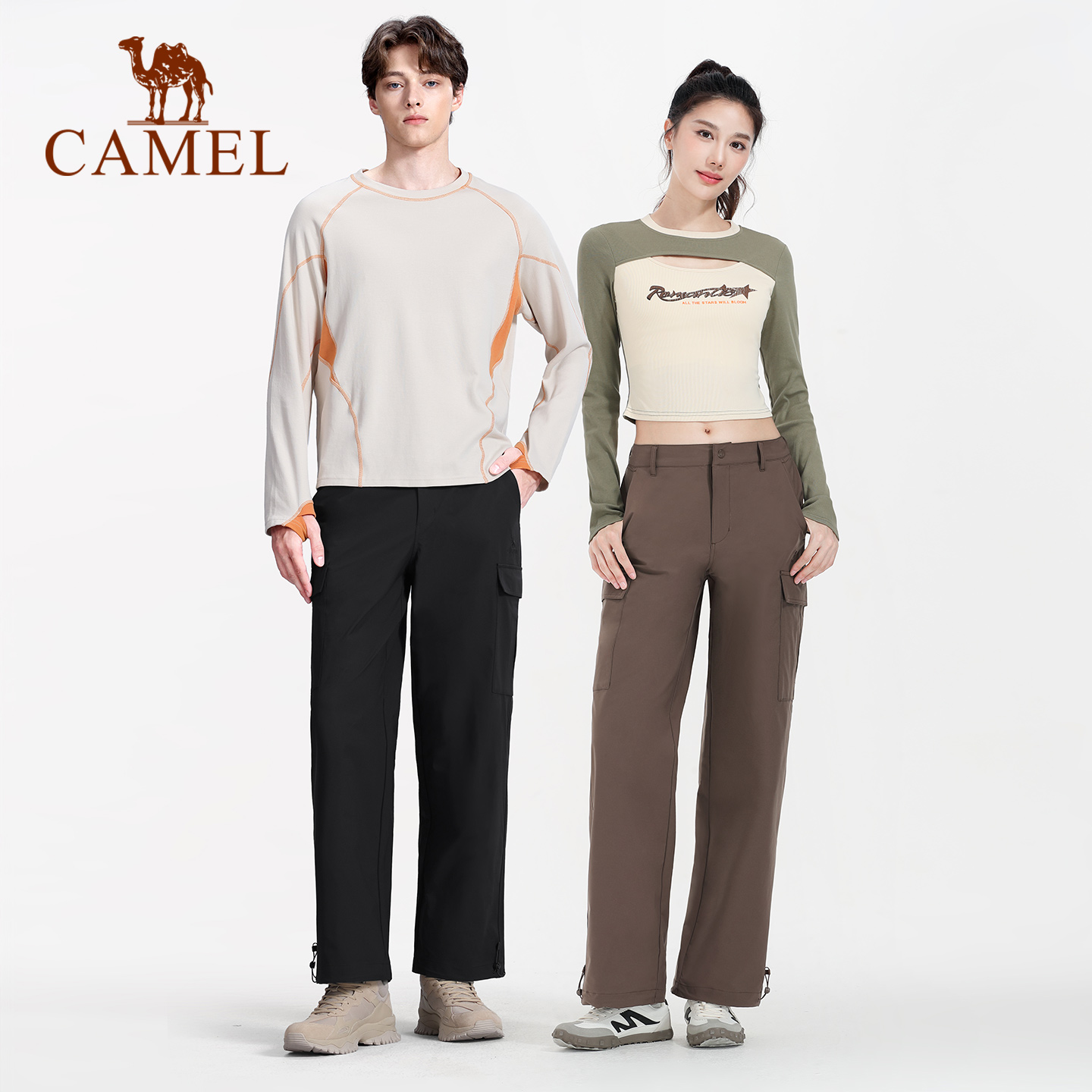显瘦直筒工装裤男女骆驼冲锋裤