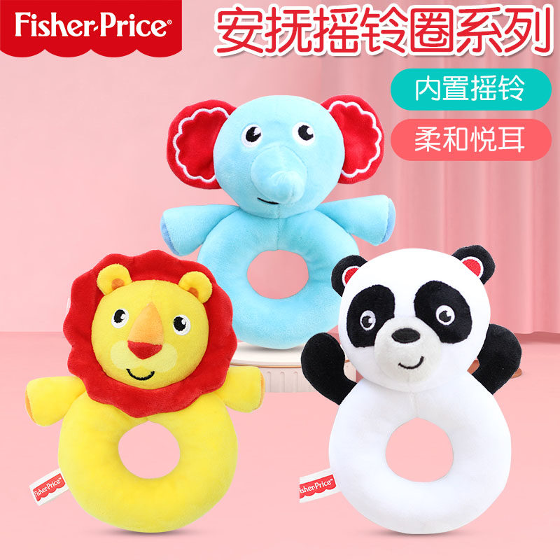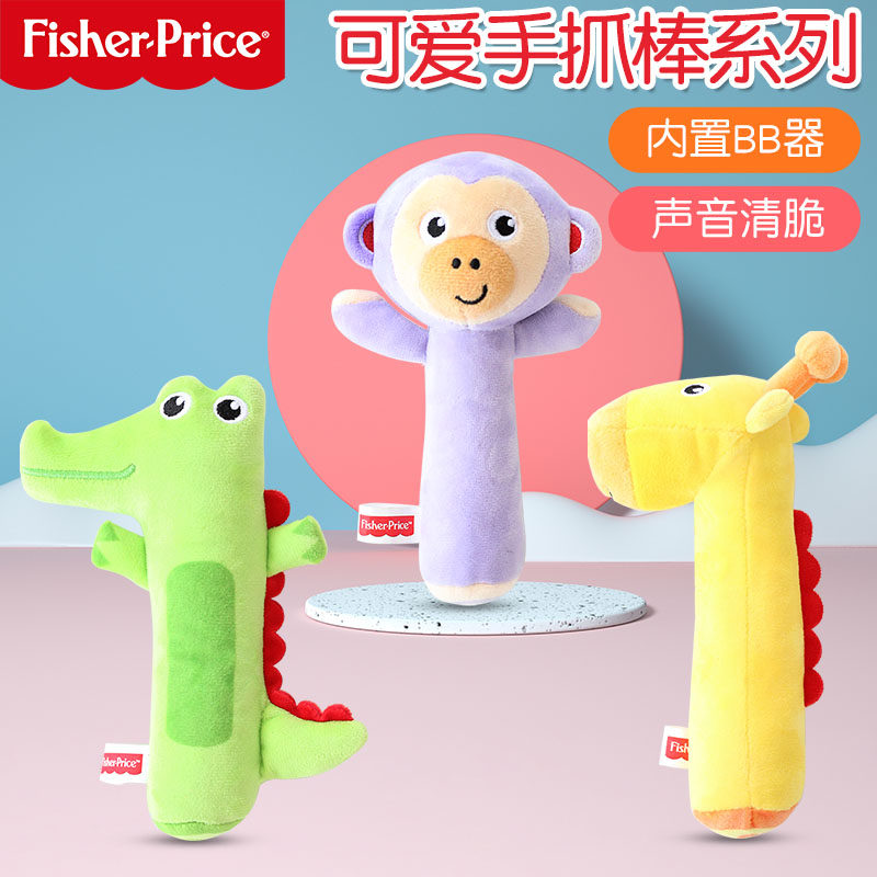 费雪手抓棒婴儿安抚玩偶宝宝布艺毛绒动物摇铃圈手偶玩具可咬bb棒