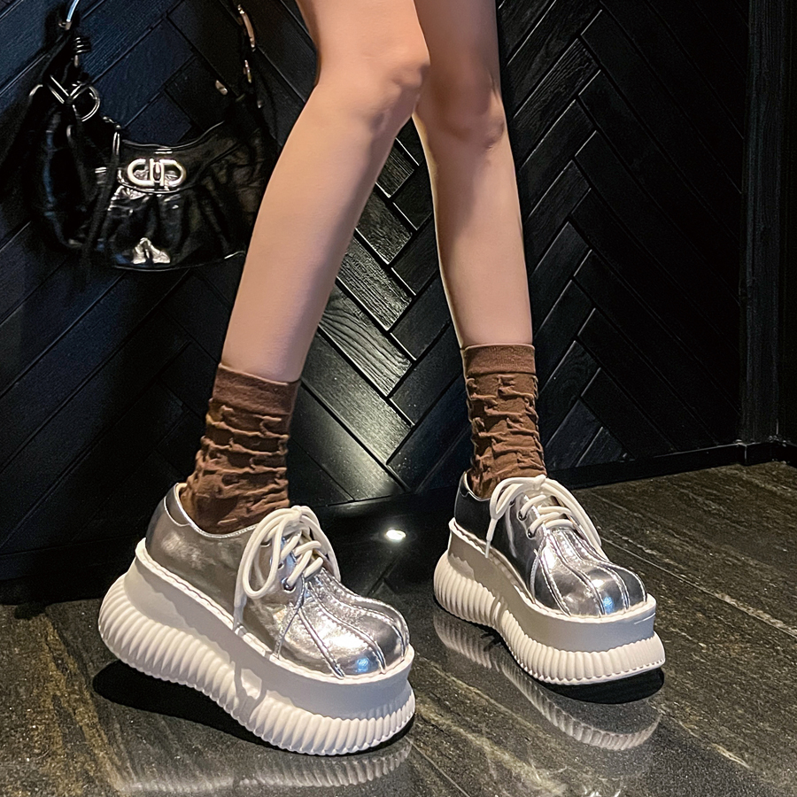 真皮厚底英伦网红街头百搭系带单鞋女2025年秋新款时髦显高松糕鞋