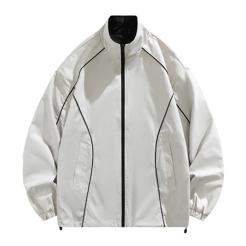 双面穿美式撞色拼接青少年运动夹克男秋潮牌复古条纹长袖外套