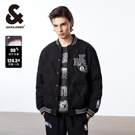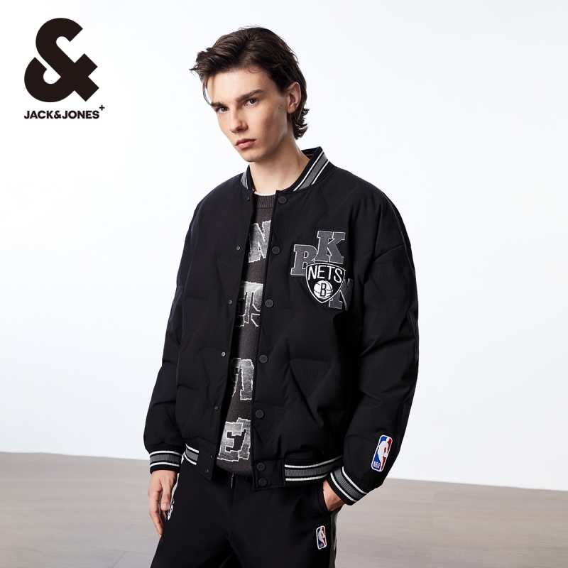 杰克琼斯outlets春季NBA联名篮网队宽松棒球服运动羽绒服外套男装