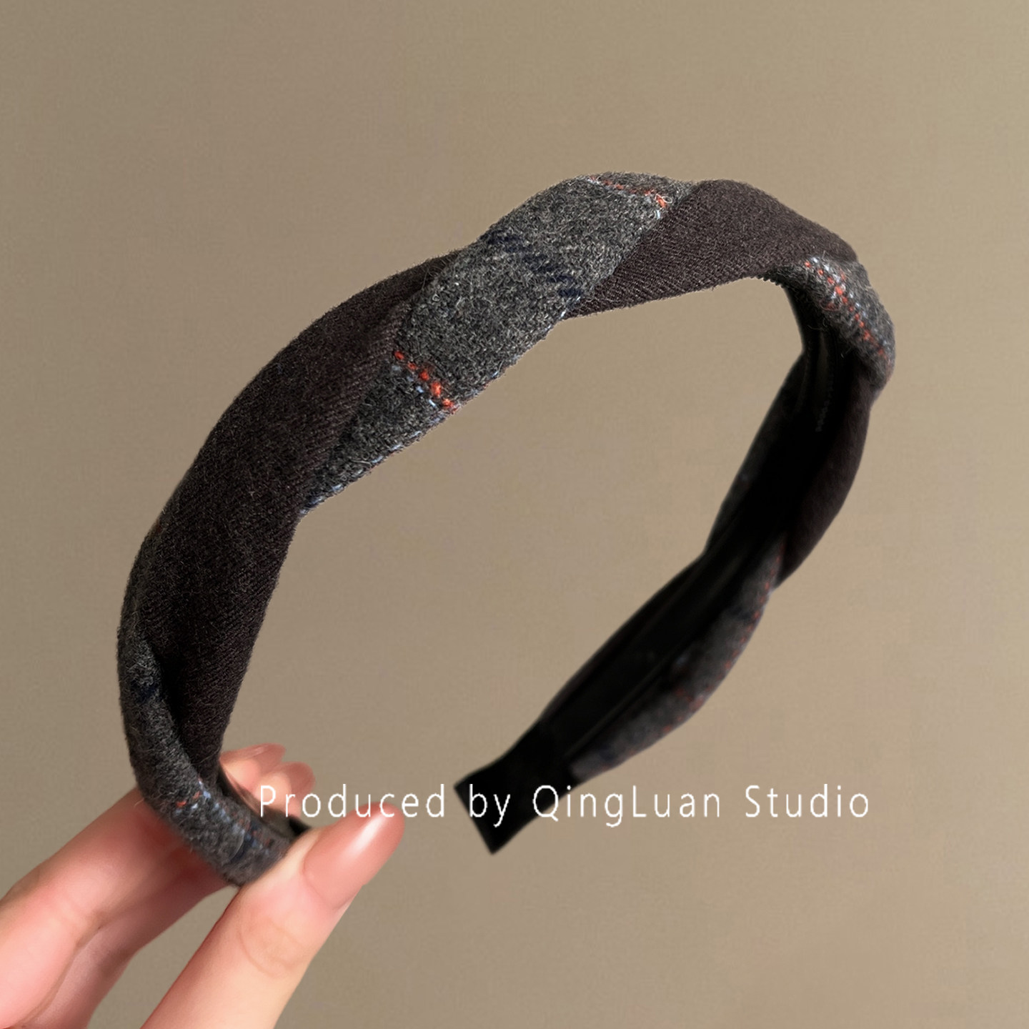 雾岛巴黎~气质灰色毛呢麻花发箍
