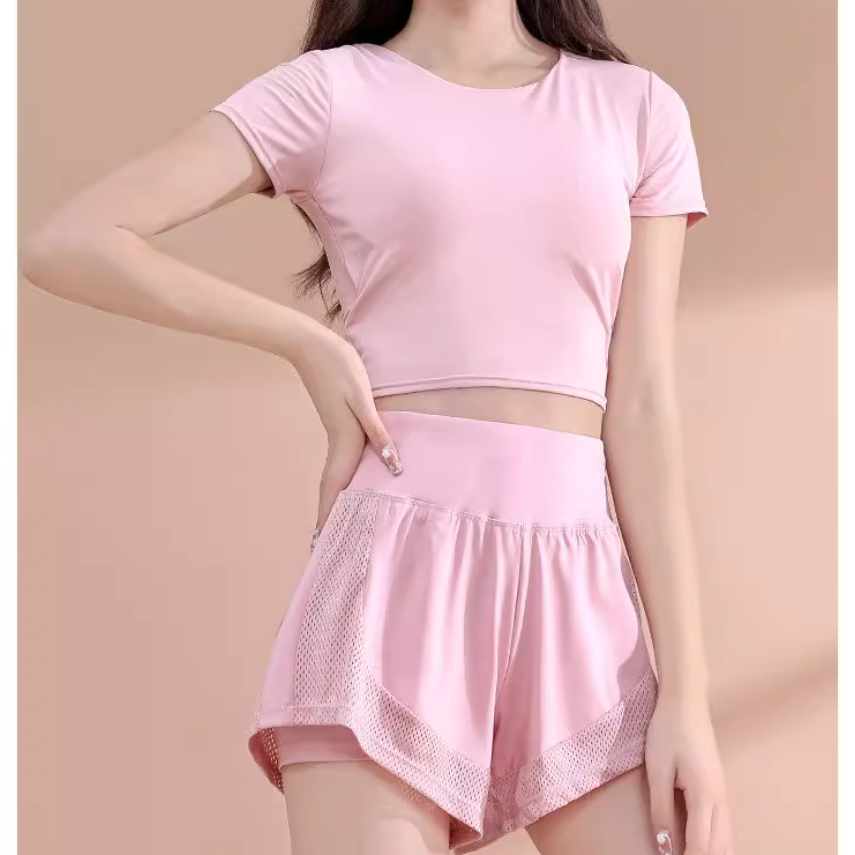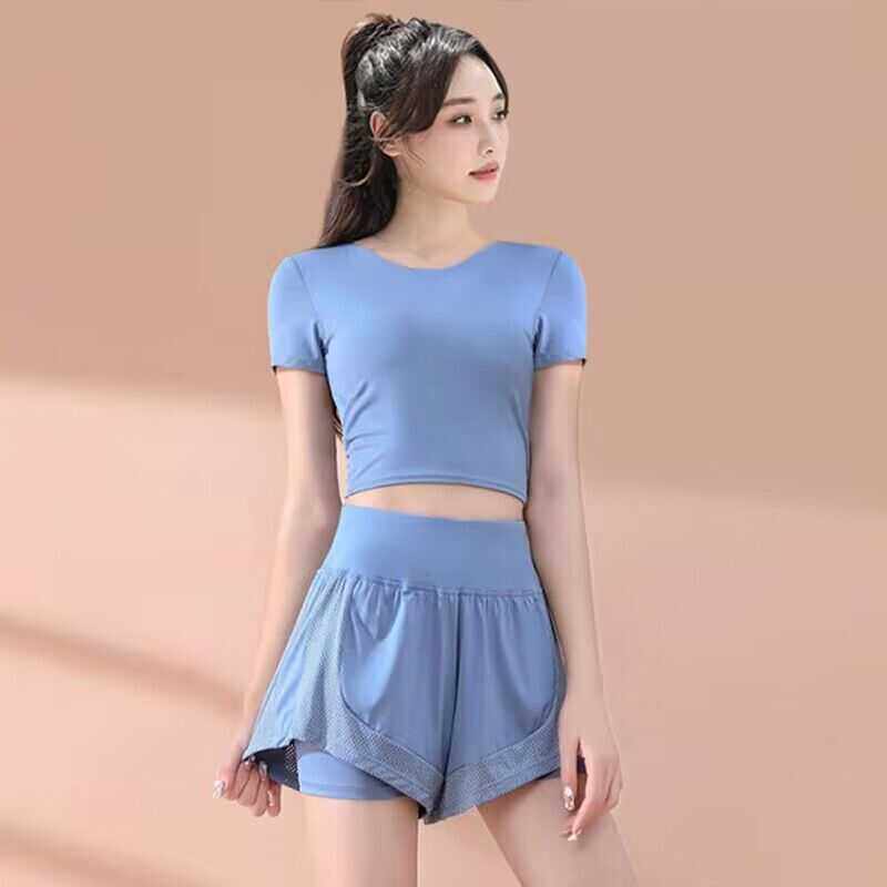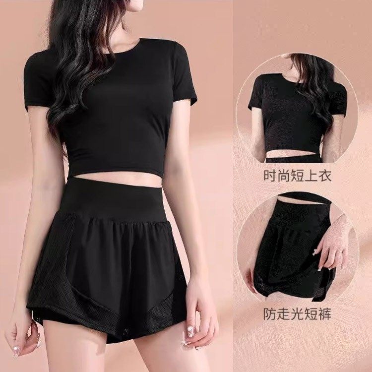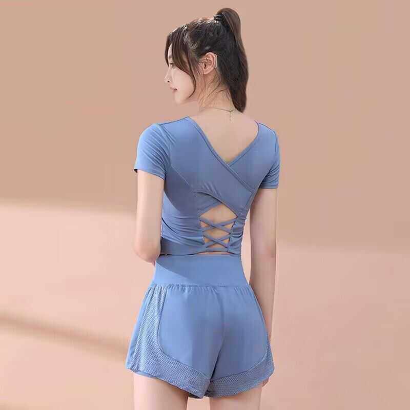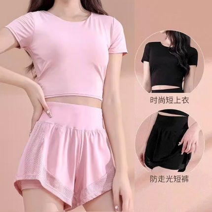 大码运动休闲风套装女2024夏季短款露背上衣短裤速干瑜伽服两件套