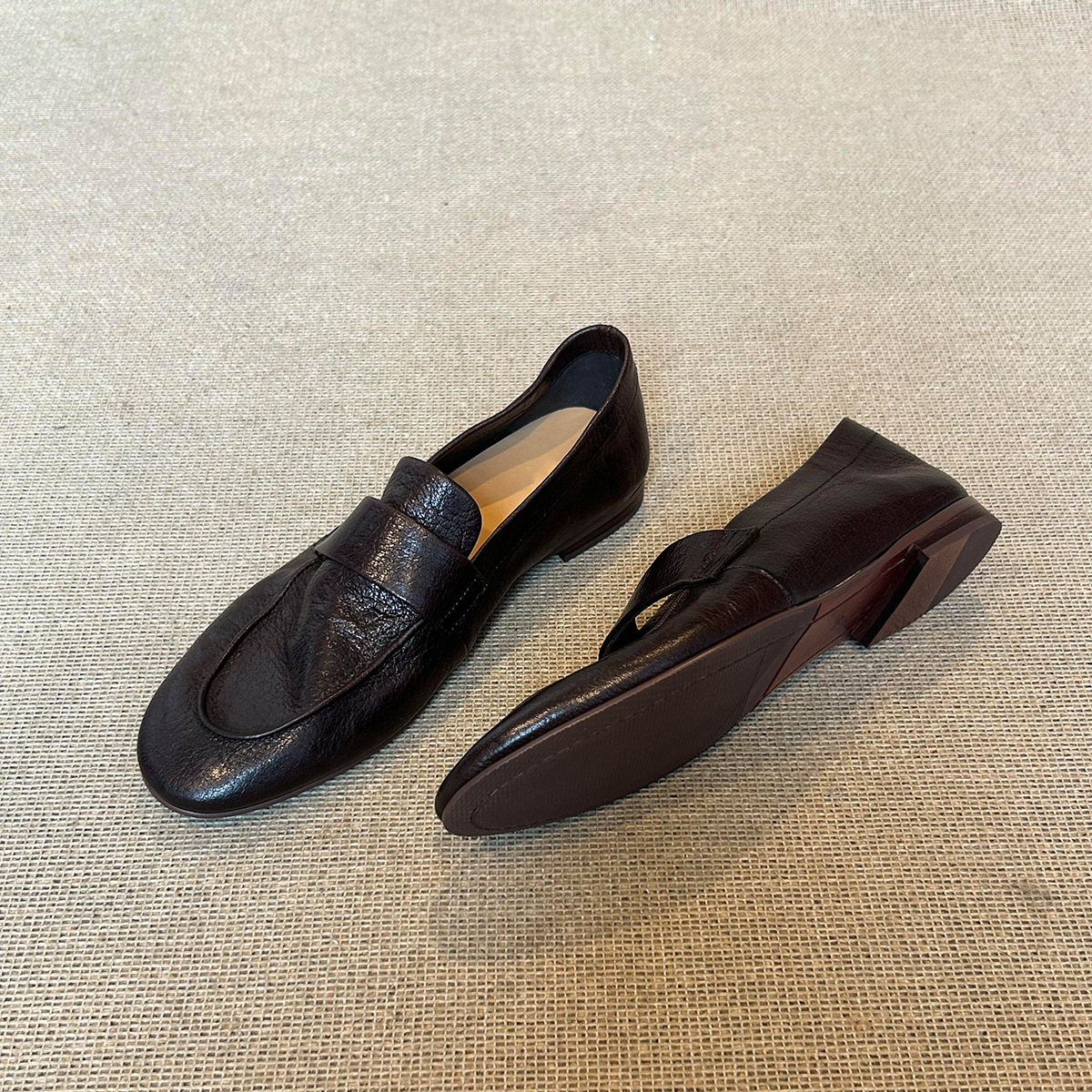羊皮版~复古软皮乐福鞋女一脚蹬简约真皮单鞋通勤平底百搭小皮鞋