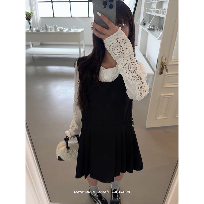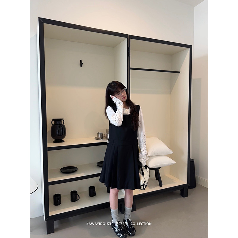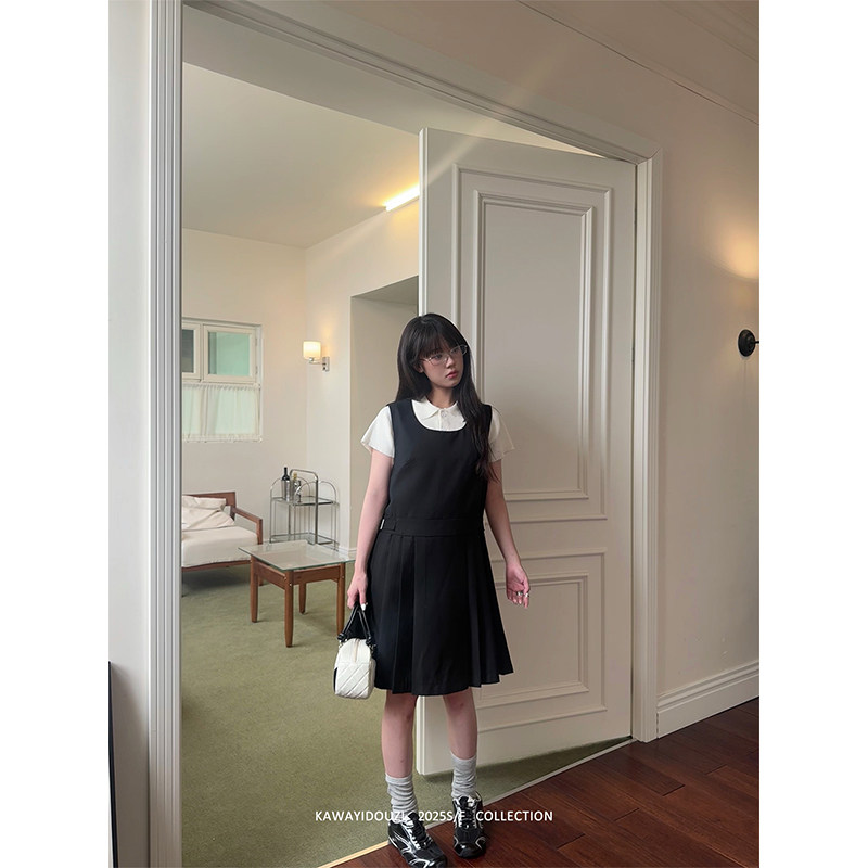 Kawayi豆子【日漫少女】韩系学院风百褶miu系西装无袖背带连衣裙