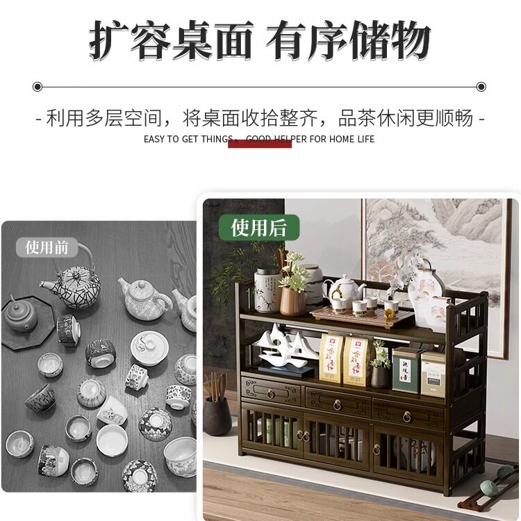 桌面茶杯收纳置物架子小型博古架实木中式紫砂壶茶具茶叶摆件展示