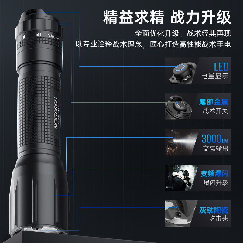 纳丽德TA30C MAX战术手电筒多功能充电远射户外便携强光充电手电