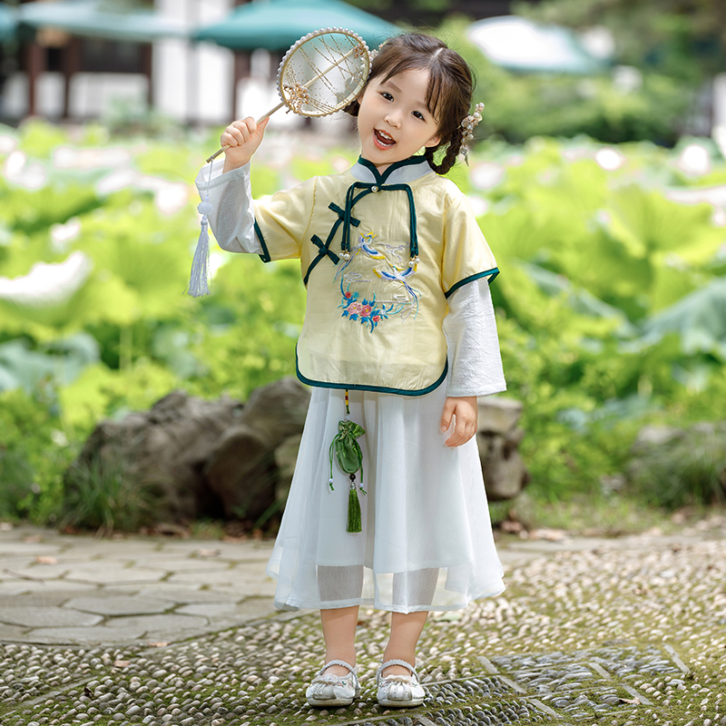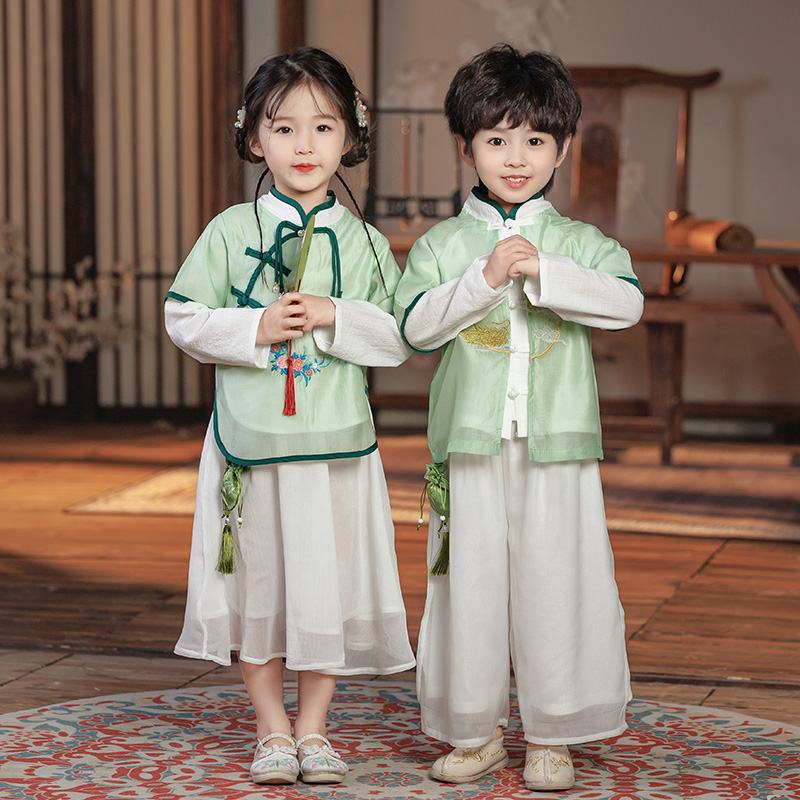 儿童汉服男童中国风国学服唐装春秋长袖古装女童国风中秋节演出服
