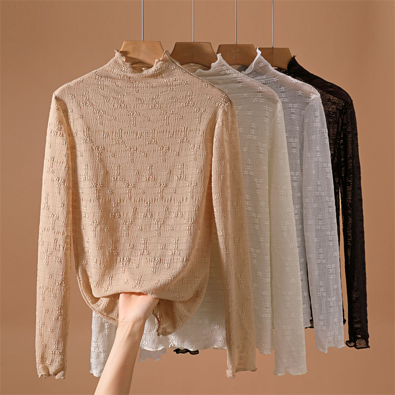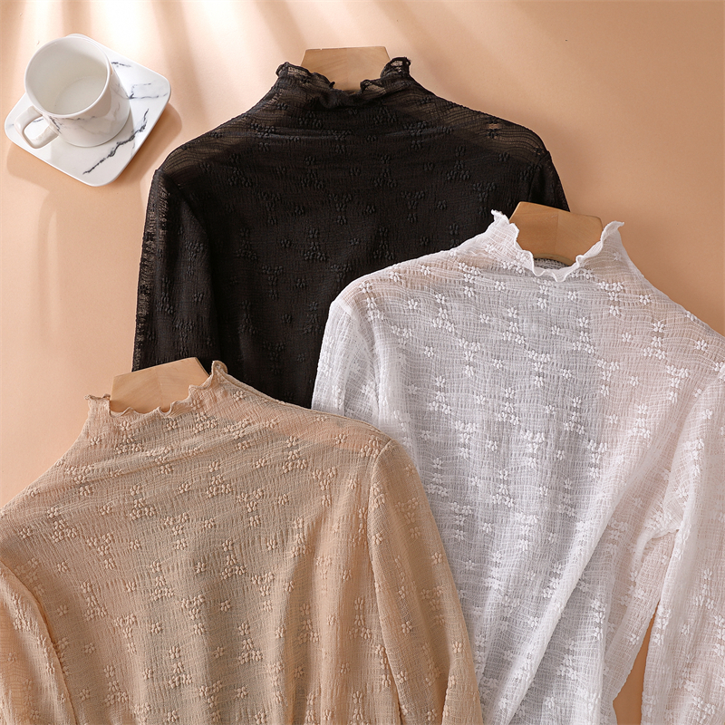 半高领蕾丝打底衫女2023春秋新款长袖性感网纱内搭小衫修身上衣女