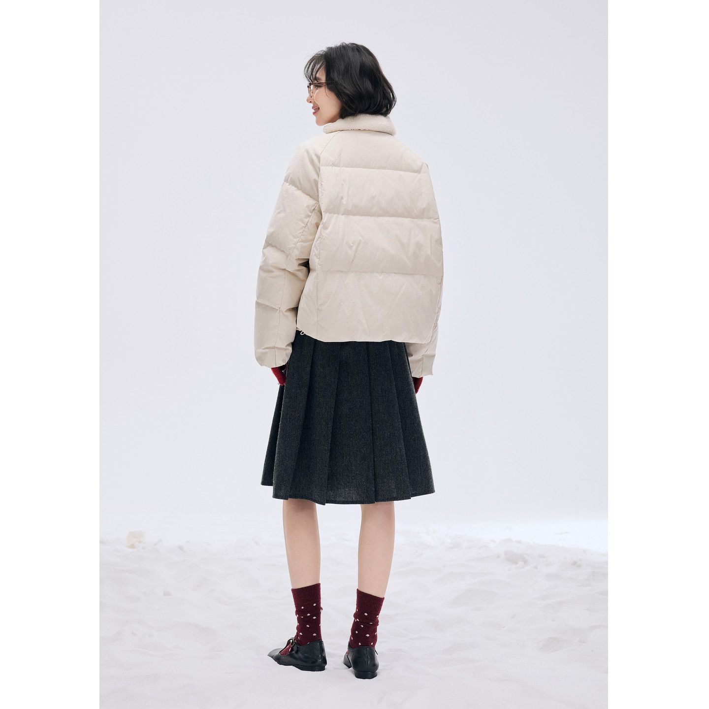 紫涵短款仿羊羔毛翻领羽绒服女2025冬季新款日系简约轻薄鸭绒外套