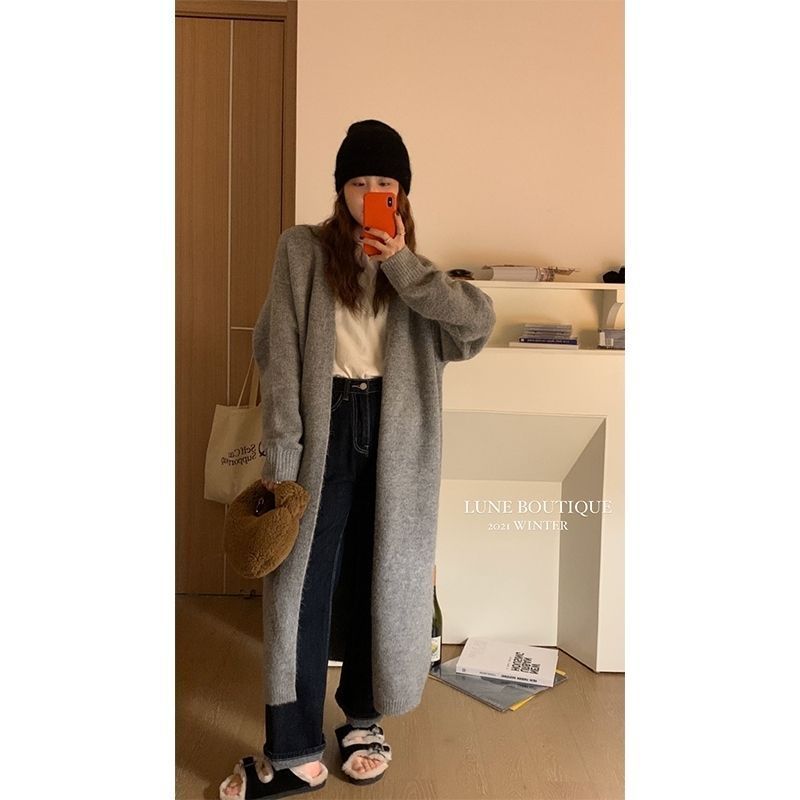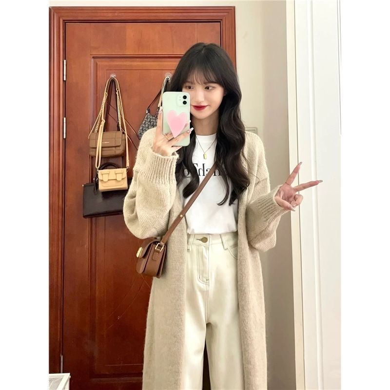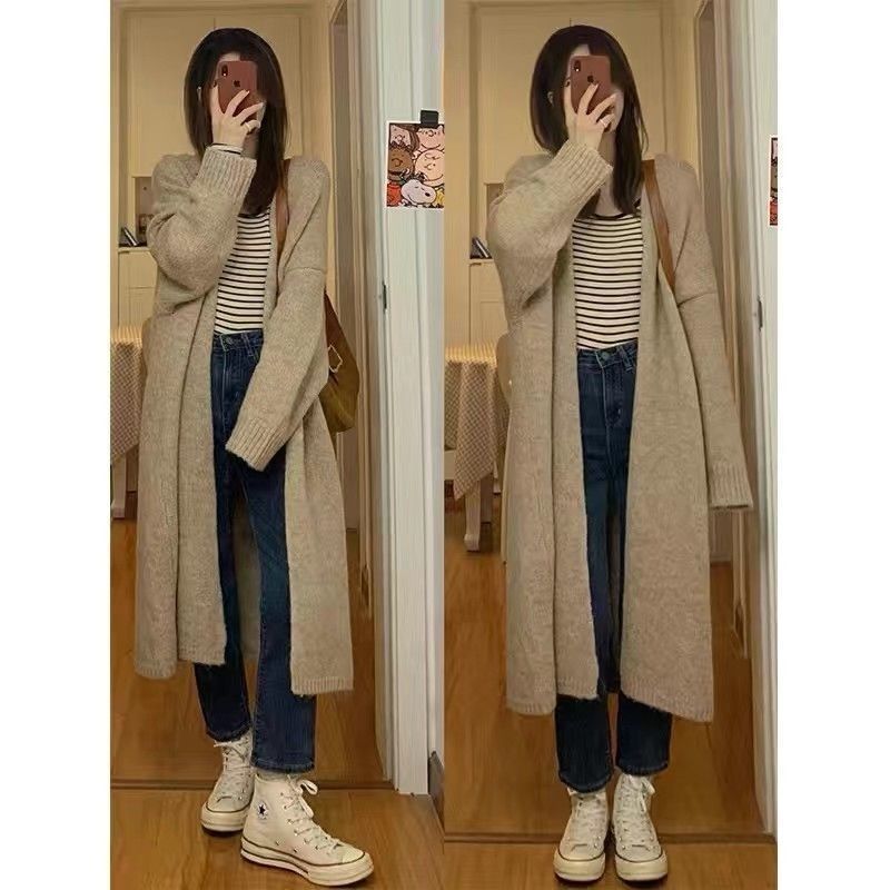 2023秋季新款百搭宽松韩系温柔风毛衣外套慵懒超长款针织开衫女