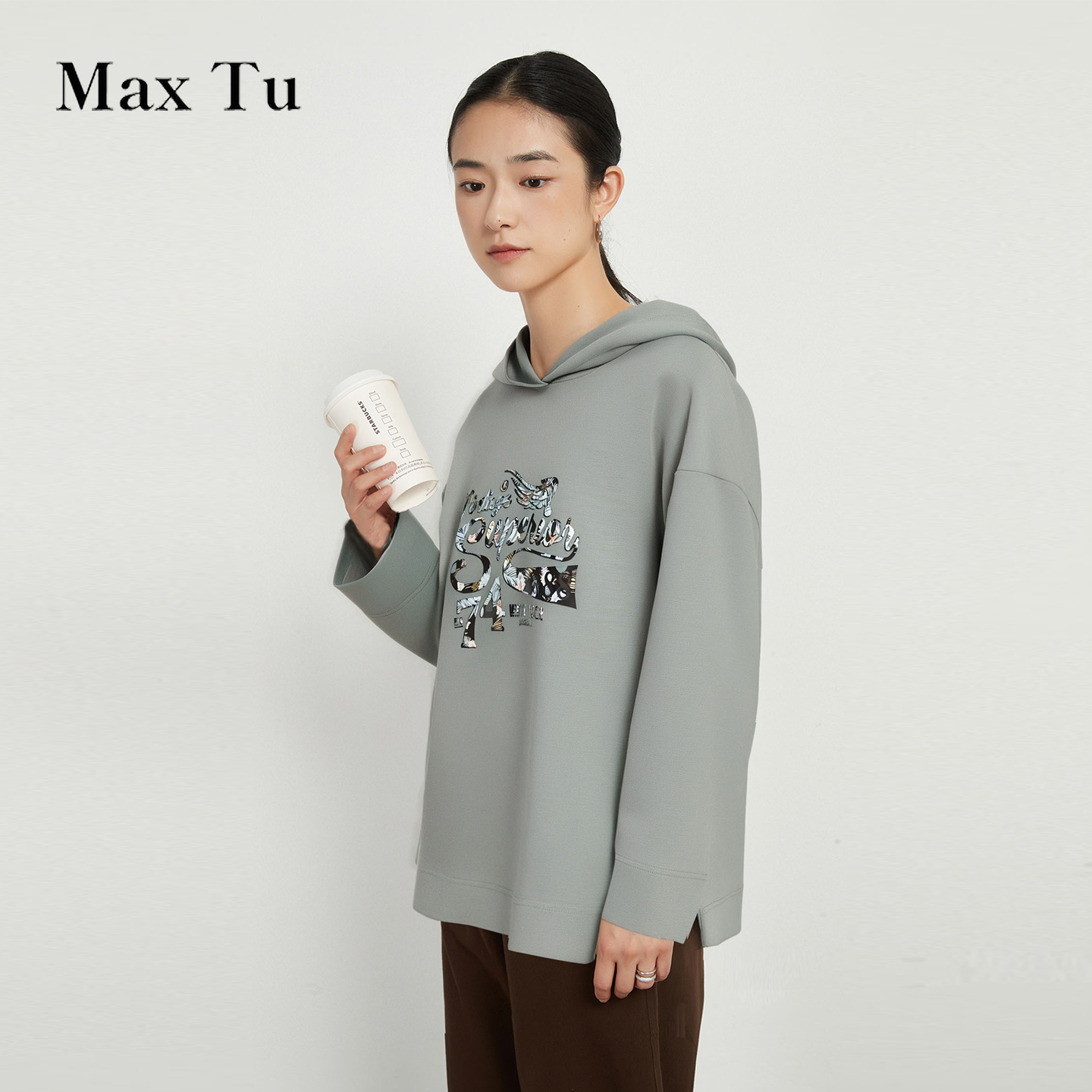 Max Tu女装2025年春秋新款宽松大码休闲印花全棉连帽长袖卫衣