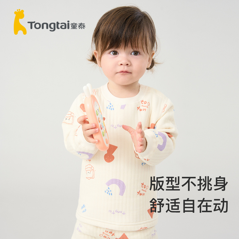 童泰婴儿上衣秋冬季薄棉宝宝保暖衣服居家内衣儿童肩开长袖套头