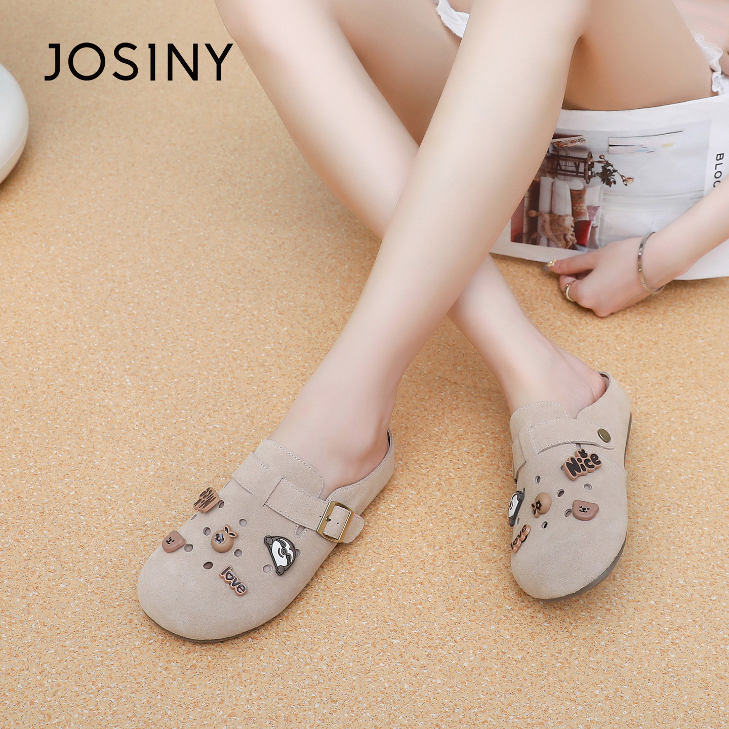 卓诗尼2025春秋新款厚底勃肯鞋时尚舒适休闲半拖鞋潮流包头拖鞋女