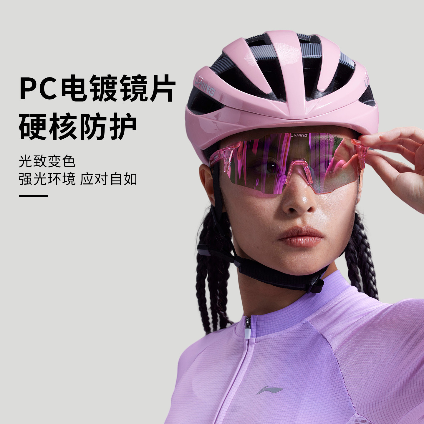 李宁骑行眼镜护目男女款专业骑行装备无框骑行风镜防风沙电镀运动