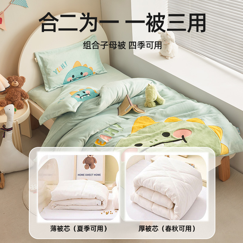 贝肽斯幼儿园牛奶绒三件套冬被子