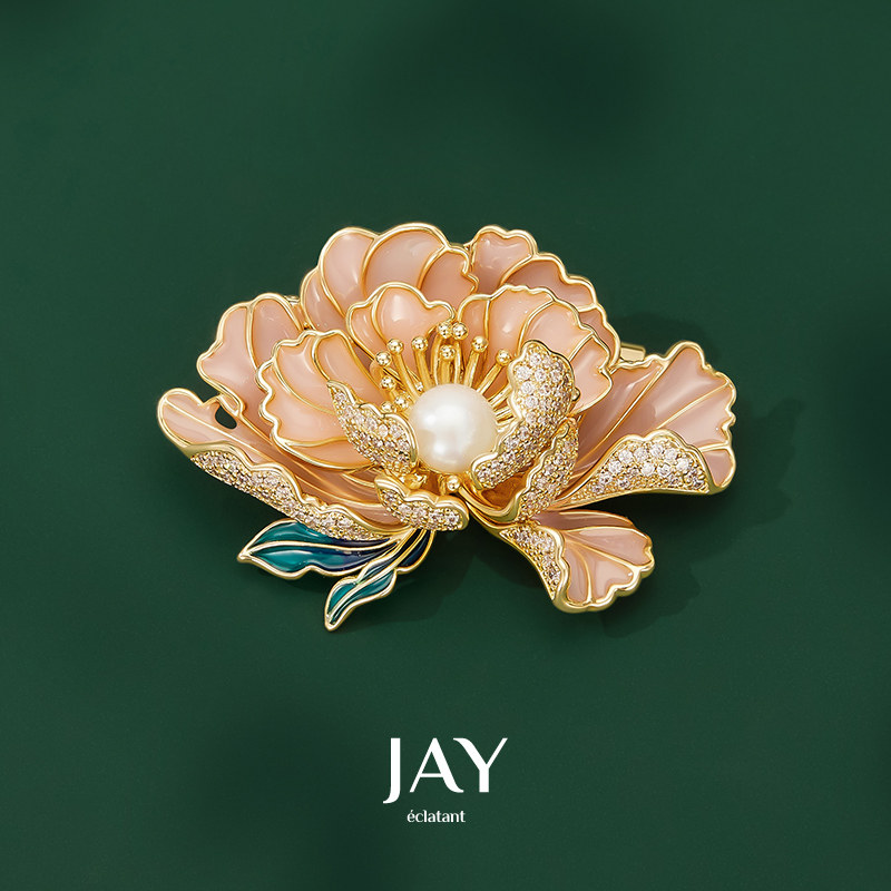JAY古典新中式牡丹胸针高端精致时尚胸花秋冬别针配饰生日礼物
