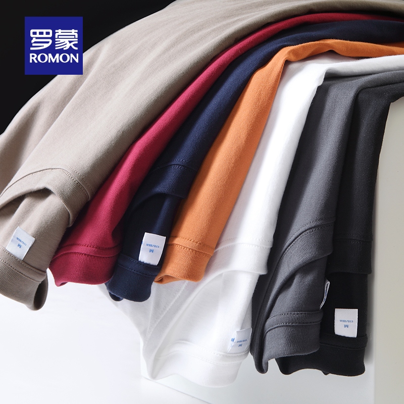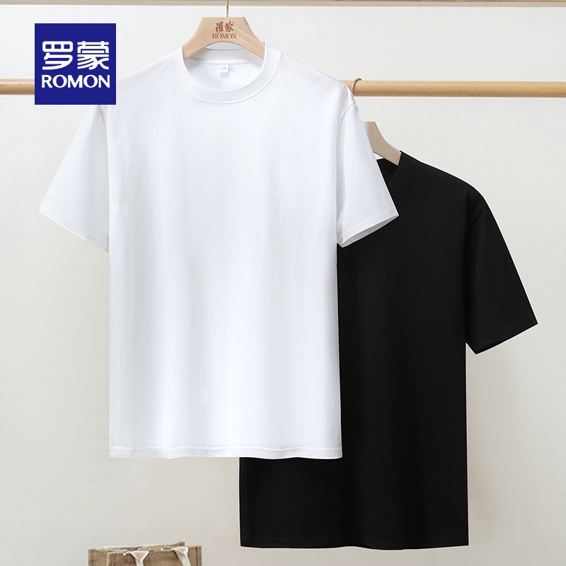 【纯棉】罗蒙男士圆领短袖T恤衫2025夏季薄款亲肤宽松百搭上衣男