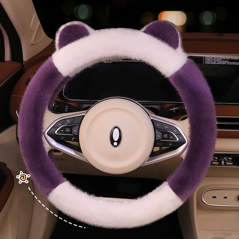 冬季毛绒方向盘套高级感女神短毛绒新款汽车方向盘把套冬天保暖女