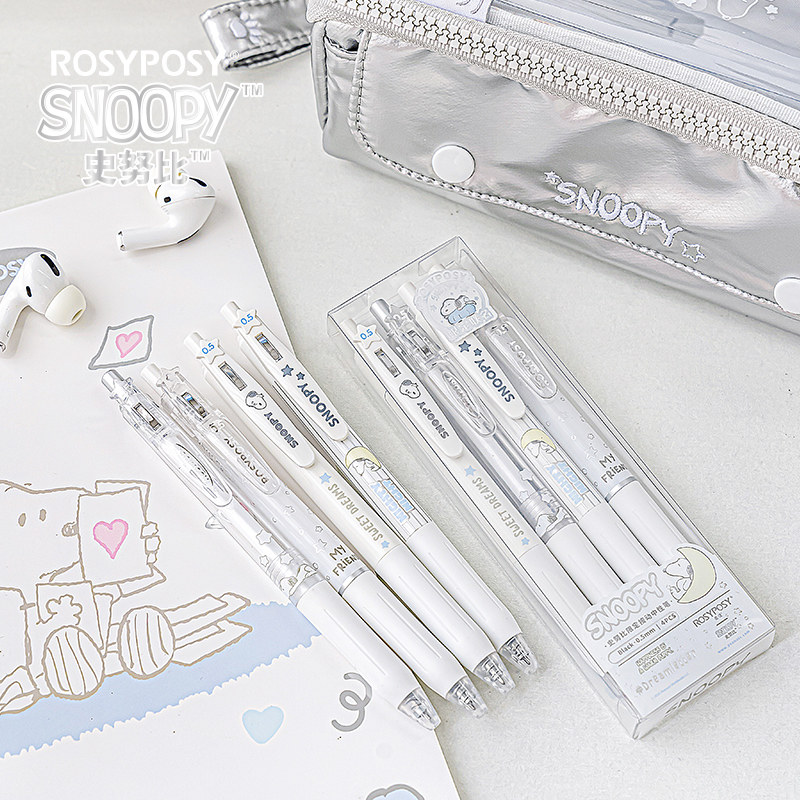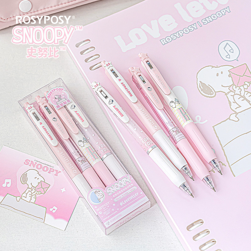 「顺滑CS双珠!韩国速干墨水」ROSYPOSY柔设史努比0.5黑笔中性笔