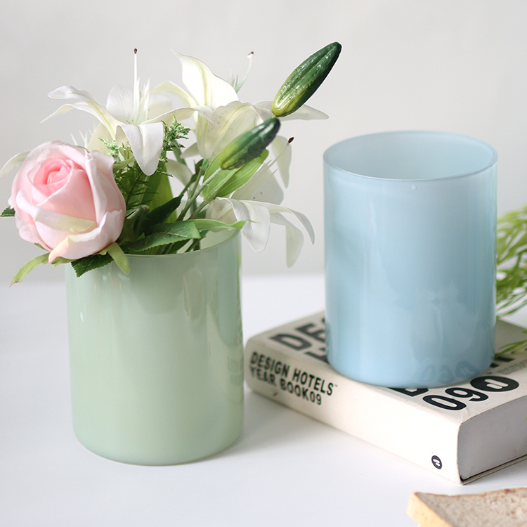 北欧莫兰迪色浅蓝直筒玻璃花瓶高级感轻奢淡绿色小清新水培插花器