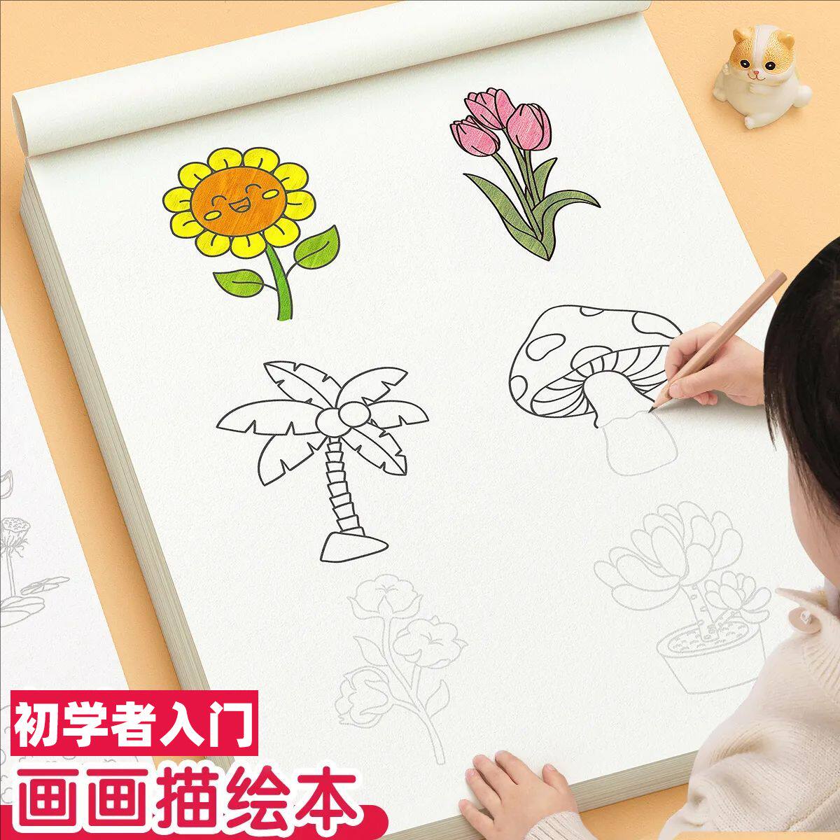 线描画画临摹画册绘画儿童简笔画临摹卡通线稿入门描线控笔图画涂色书锻炼孩子动手能力培养孩子绘画兴趣零基础入门涂色画临摹本