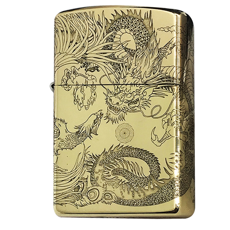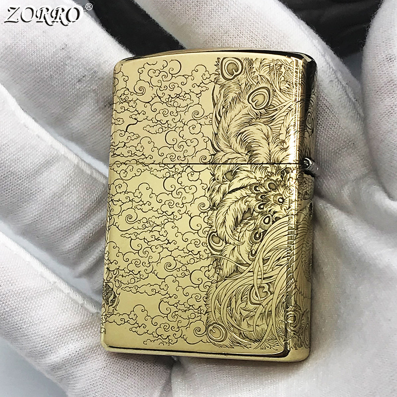 zorro佐罗正品煤油打火机砂轮防风纯铜黄白铜雕刻图环绕龙凤呈祥