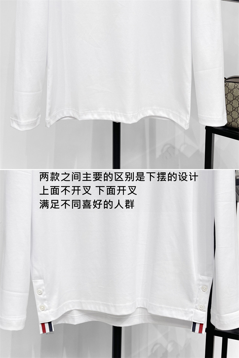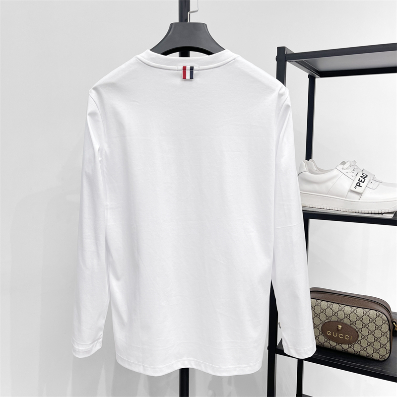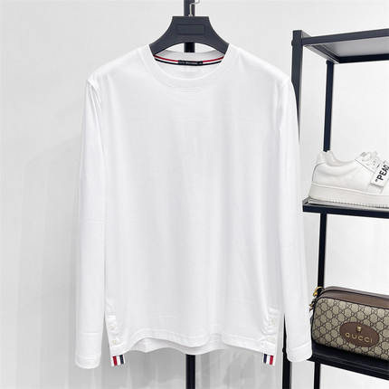DH高端定制春秋季纯白色80支双丝光棉TB织带圆领纯棉长袖T恤衫